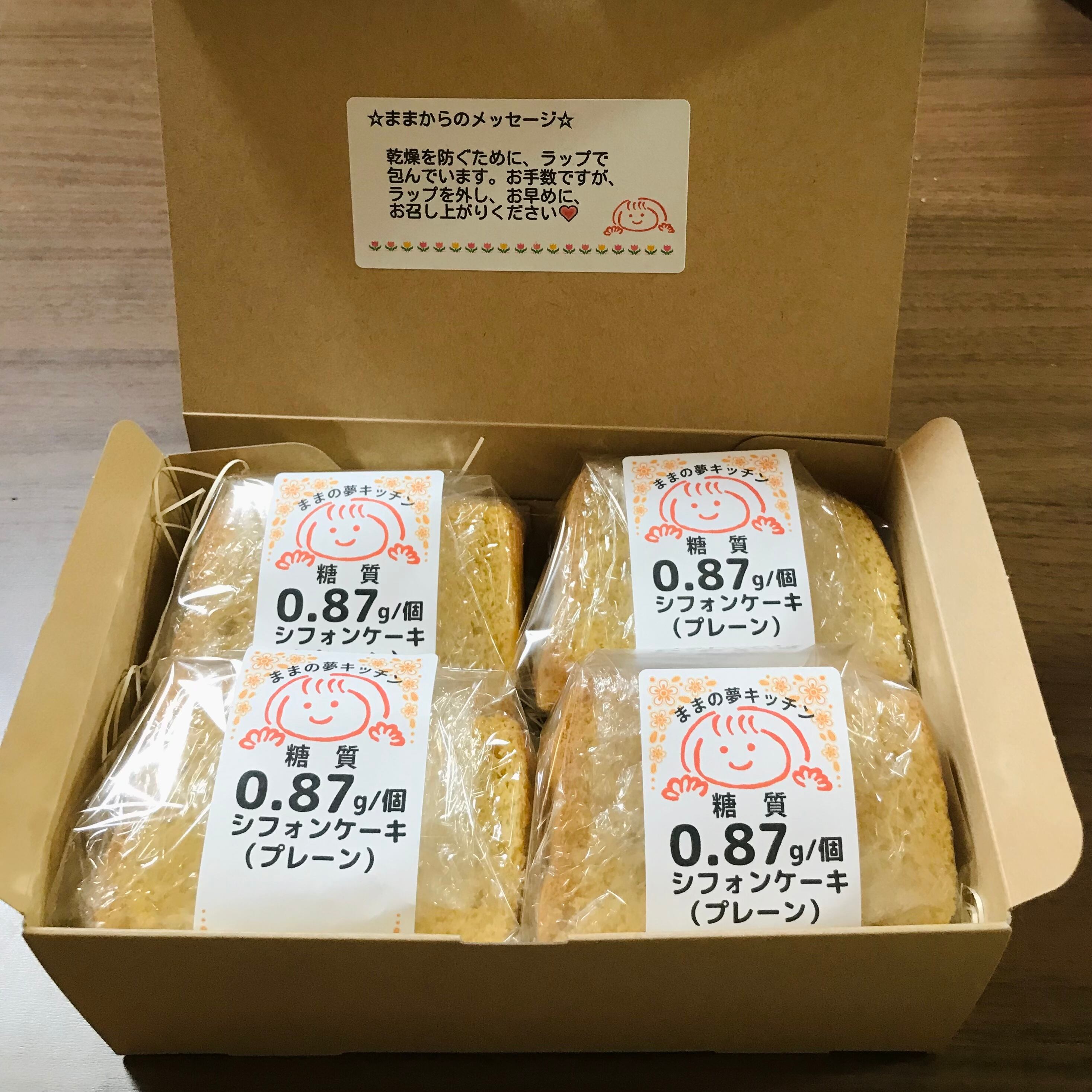 ◆低糖質 シフォンケーキ(プレーン) 4個セット(8分の1カット)